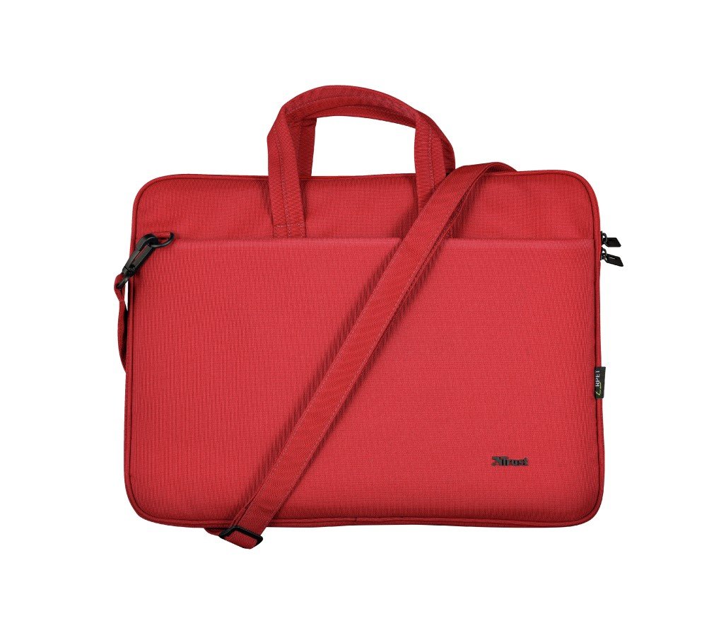 Trust Bologna Slim ECO-Friendly, torba za laptop 16”, od recilikliranih PET materijala. Prednji džep za dodatke, crvena boja.
